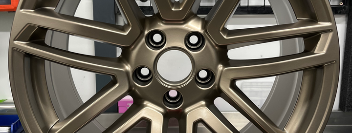 The wheels are now cleaned off using compressed air and masked ready to be powder coated in a single, two or three stage choice of colour! And then partially baked in the oven, cooled and then a clear coat is applied for a full bake to seal it all in!
